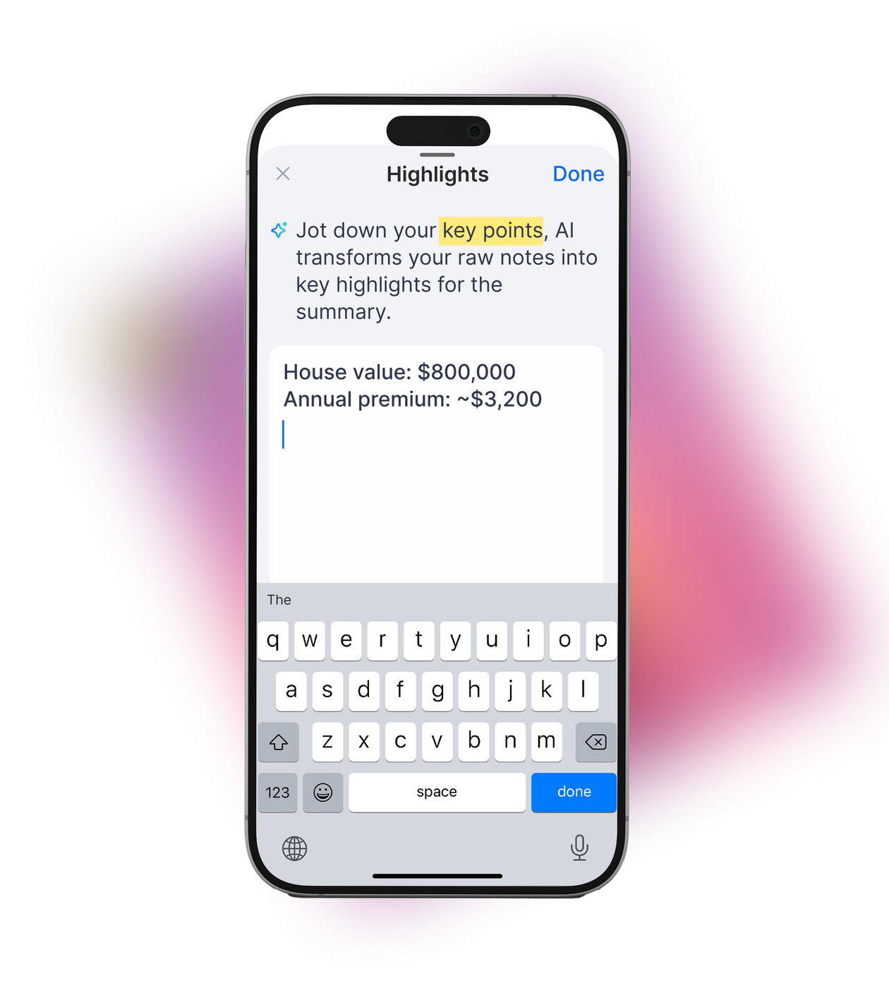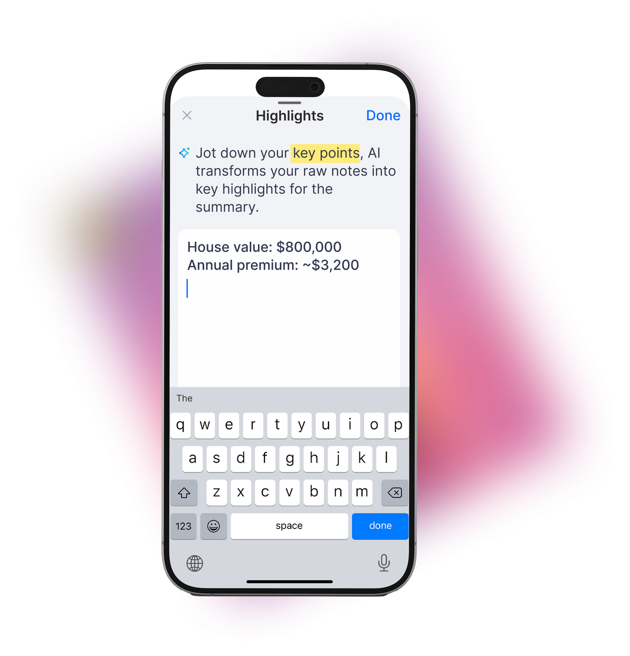 Type in any keywords to regenerate targeted summary and insight
